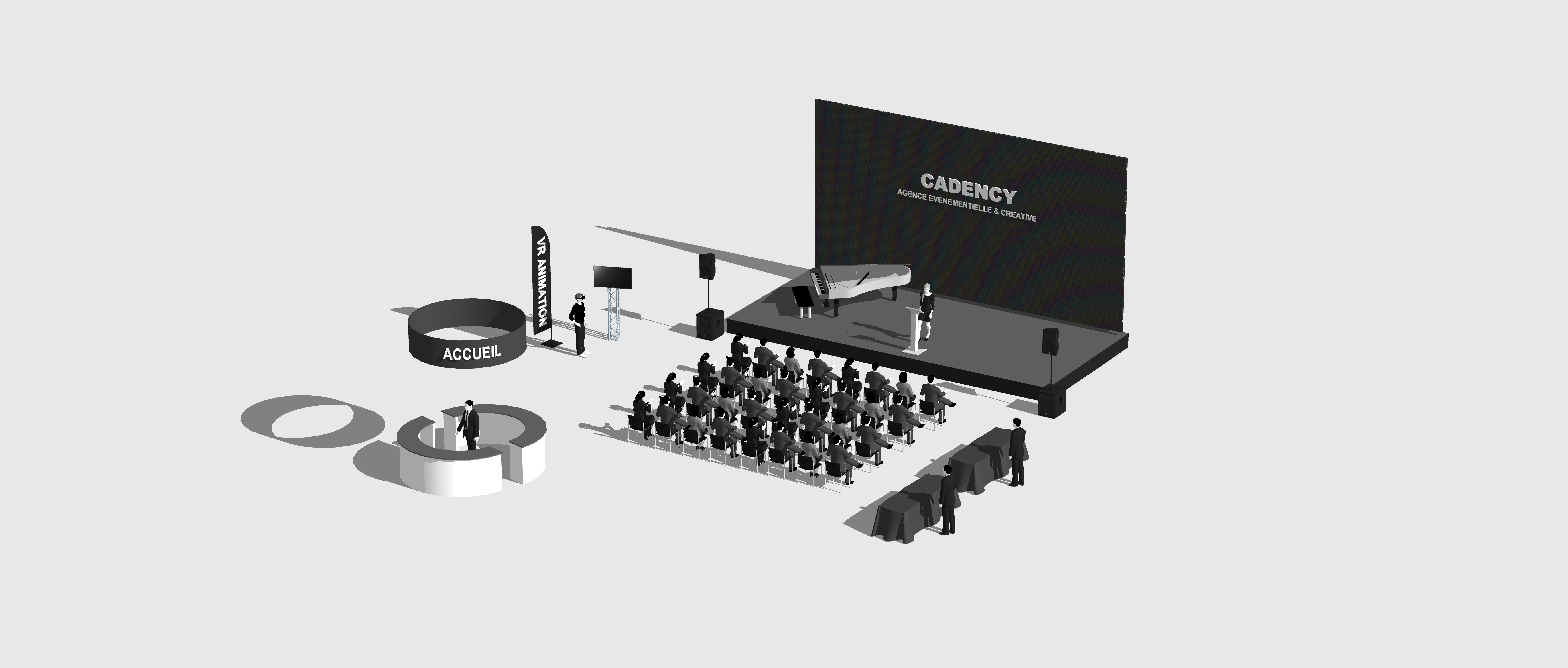 Nous vous accompagnons dès les premières étapes : de l’audit organisationnel à la création de plans 3D, en passant par la scénographie, le conseil en production et la création d'éléments personnalisés.